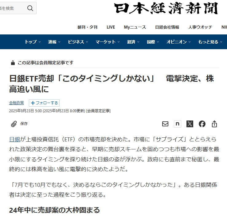 • 日銀ETF売却発表後も、株価は上がっている事実。