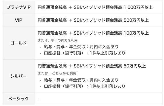 普通預金とハイブリッド預金を足した額ですので、SBI証券を使っている人ならシルバーかゴールドくらいになりそうですが…、どうでしょう?